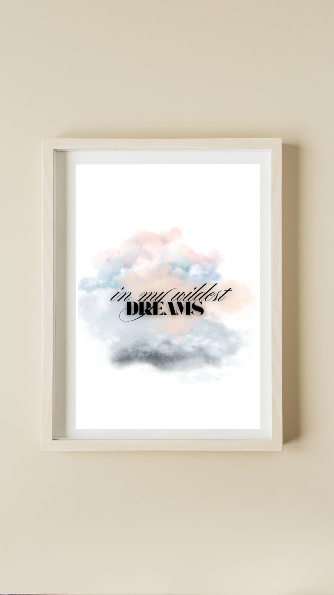 Soft, ethereal, and full of longing — this print captures the essence of “Wildest Dreams” through a sky painted in sunset hues. Shades of blush, lavender, and golden light drift across the clouds, evoking the feeling of a fleeting moment you wish could last forever.